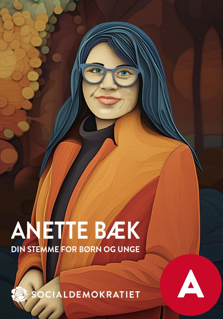 Farvevalget er inspireret af efteråret, da valget ligger i november. Det er en tid på året, hvor vi søger nærmere på hinanden. Varme, mættede nuancer er valgt for at fremkalde netop det: en følelse af omsorg, tilstedeværelse og menneskelig varme. De taler ind i Anettes budskab om, at det er tid til at sætte børn, unge og relationer først – med blik for det nære, det naturlige og det nødvendige.”